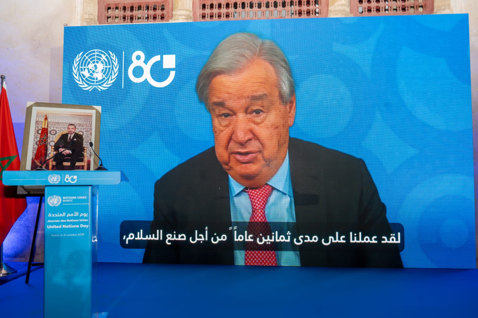بمناسبة الاحتفال بالذكرى الثمانين لتأسيس منظمة الأمم المتحدة، أصدرت مجموعة بريد المغرب، بشراكة مع مركز الأمم المتحدة للإعلام بالمغرب، طابعًا بريديًا تذكاريًا يحمل عنوان «الأمم المتحدة: 80 سنة».